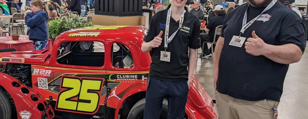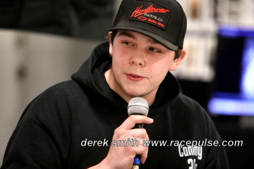 We weren't done just yet for the day as we had show number 5 of the weekend to go and we were on stage with Cam Thomson to discuss his busy race season as we will see Cam Thomson return to the dirt side in his 28T Crate Sprint on Friday nights at Ohsweken Speedway and then he will climb into a BT Racing prepared bone stock for Cam to compete in this summer at Flamboro Speedway as he looks to chase the Pure Stock championship at the track.